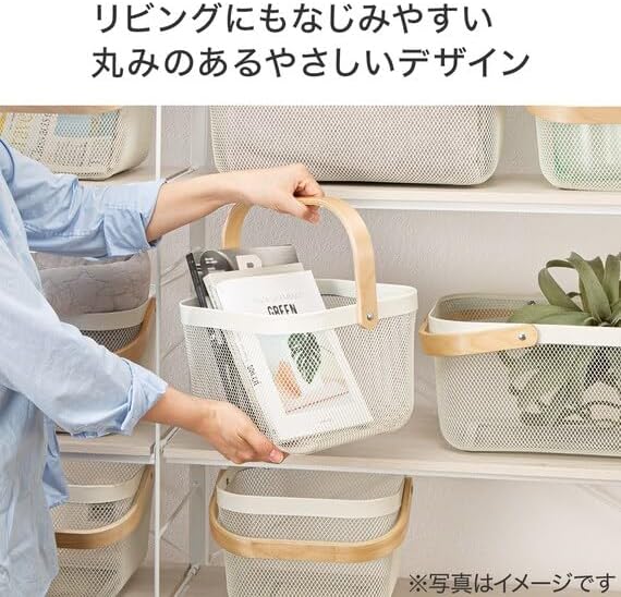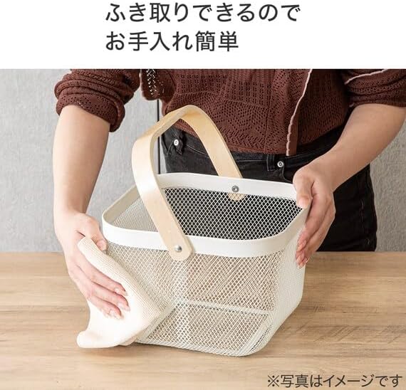 【ニトリ(NITORI) バスケット スクウェア ET02 ホワイト】は、シンプルで使い勝手の良い収納アイテムです。幅24×奥行24.5×高さ17.5cmのサイズで、ホワイトカラーが清潔感を演出します。お部屋の雑多な小物を整理整頓したり、洗面所やキッチンなどのスペースをスタイリッシュに演出したりするのに最適です。耐久性のある素材で作られており、長くご使用いただけます。おしゃれで機能的な収納ボックスをお探しの方におすすめのアイテムです。
